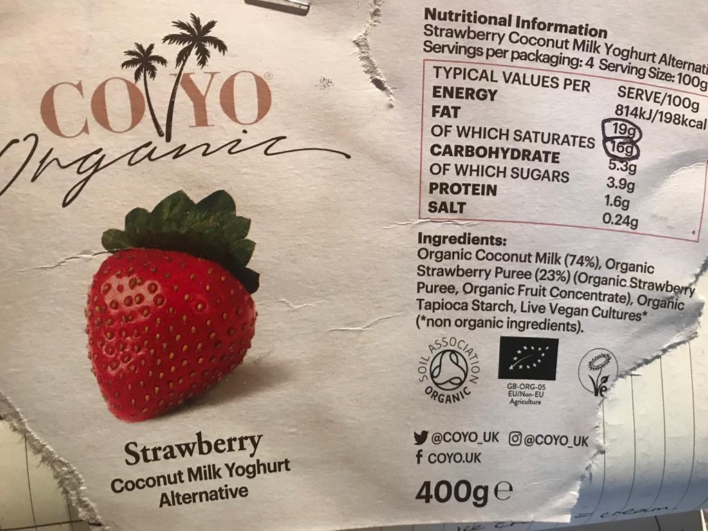 We need fat and we need carbs and we need sugars. What we don’t need is too much of any of them. This is obvious. What is wrong is when foods which are extremely high in fat or carbs or sugar are marketed as healthy when they are quite simply not! Check out below. One is an “organic, natural coconut yoghurt with natural strawberry flavourings” and the other is “clotted double cream vanilla ice cream.” In our minds we make the assumption that yoghurt is good and low fat and ice cream is high in fat and bad. We assume natural means less sugars and more nutritional value, but we are wrong. The yoghurt has 4x the amount of saturated fat than the ice cream. The ice cream has 3x as much sugar than the yoghurt. To maintain flavour, low-fat products tend to have more sugar, low-sugar products tend to have more fat. It is a trade-off. Fat has more than twice as many calories per gram as carbohydrates, but this doesn’t necessarily make it better or worse for us.